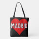 Grand coeur rouge et la ville de Madrid. Conception de sac cool.