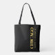 Le sac fourre-tout féminin Lux présente les coordonnées de la carte de latitude et longitude de la ville de Chicago en polices d'or sur arrière - plan noir