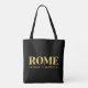 Lux sac fourre-tout présente Rome, Italie latitude et longitude coordonnées de carte en polices d'or sur arrière - plan noir.