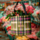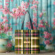 Sac cabas personnalisé vert olive et rose à carreaux | Accents dorés de luxe | Personnalisable pour le printemps/l'été, les achats, les enterrements de vie de jeune fille |