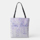 Magnifique Lilac Hanging Wisteria Team Bride Sac fourre-tout. Belle svelte longue pendaison de glycine violette sur un arrière - plan argenté faisant la glycine vraiment pop. Grand cadeau pour votre fête de mariée. Facile à éditer avec le titre ou les noms pour l'ensemble du groupe!