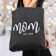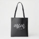 Simple Script Maman Sac fourre-tout personnalisé. Célébrez la maternité avec ce design minimaliste qui met en vedette le mot "maman" dans une police manuscrite fluide sur les deux côtés en blanc sur un sac fourre-tout noir. En bas à droite, un serif classique "est. year" ajoute une touche personnelle—parfaite pour une maman à être, une nouvelle maman, ou pour célébrer maman à tout moment. La couleur fourre-tout peut être changée. Idéal pour la Fête des Mères ou pour un usage quotidien, ce design moderne et épuré offre une façon intemporelle d’honorer la maman dans son style.