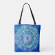 Tote Bag Mandala White Outline bleu Aquarelle -