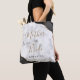 Ce sac fourre-tout élégant et moderne pour la mère de la mariée présente un design d'agate à l'aquarelle noire rehaussé de faux strass dorés dans deux coins. Les mots "Mère de la mariée" apparaissent en écriture manuscrite dorée et noire sur un fond de marbre gris et blanc. Ajoutez son nom en police de caractères copperplate noire.