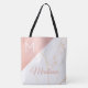 Notre sac fourre-tout à monogramme personnalisé est orné d'une impression de marbre blanc et or et de paillettes roses. Personnalisez avec votre nom et votre initiale. Les détails pailletés sont simulés dans l'œuvre d'art. Aucune paillette réelle ne sera utilisée dans la fabrication de ce produit. Consultez notre gamme complète de produits dans notre boutique Zazzle.