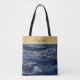 Tote Bag Marbre tendance Agate Bleu Or Pailleté Monogramme