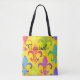 Ce sac fourre-tout Mardi Gras dispose d'un motif de fleurs de lis arc-en-ciel d'aquarelle sur un arrière - plan jaune. Personnalisez avec votre nom dans la typographie noire. Conçu par un artiste de renommée mondiale ©Tim Coffey.
