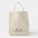 Sacs fourre-tout de mariée Calligraphie moderne en belle typographie script imprimé à l'avant. Sacs mignons et simples dans un script de calligraphie chic. Fait une grande fête de célibataire ou un cadeau mariage pour la future mariée