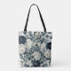 Tote Bag Mariage floral moderne bleu foncé et blanc