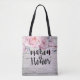 Matron of Honor Mariage Sac fourre-tout Modèles - Elégante aquarelle Boho naturel plumes florales et écriture manuscrite sur vieux Grunge Rustique White Wood Arrière - plan. Un Design Parfait Pour Votre Grand Jour ! Tous Les Style De Texte, Couleurs, Tailles Peuvent Être Modifiés En Fonction De Vos Besoins.
