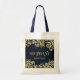 Tote Bag Mariage Sophistiqué Blue Gold Swirls