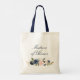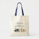 Un joli sac fourre-tout de mariée florale avec des roses bleu marine et rose et vous pouvez personnaliser le texte et les couleurs.