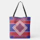 Tote Bag Médaillon d'art populaire letton rouge et bleu géo