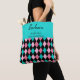 Design dynamique, ce sac fourre-tout présente un design géométrique en forme de losange bleu, rose et noir. Avec un endroit pour écrire votre nom, "Meilleure maman d'école au monde" est écrit en dessous. Achetez votre sac aujourd'hui ! Oeuvre créée par : AMBillustrations http://www.etsy.com/shop/AMBillustrations/
