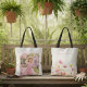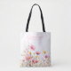 Offrez ce sac fourre-tout sentimental et fantaisiste à une grand-mère pour la fête des mères. Il présente une prairie botanique luxuriante de fleurs sauvages roses avec un cadre photo à coup de pinceau doré sur le dos. Ce souvenir fonctionnel est parfait pour une nouvelle grand-mère ou comme surprise d'anniversaire de la part des petits-enfants.