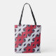Mode abstrait motif tourbillon en rouge, noir et argent blanc couleurs sac fourre-tout.