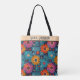 Tote Bag Modèle floral rétro vibrant avec Carrés Turquoises