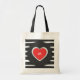 Tote Bag Modern Black and White Striped Red Heart Monogram