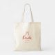 Modern Script Coquette Bow Bride's Name Wedding/Bachelorette Tote Bag. A minimalistic and cute wedding tote bag, designed with "bride" in elegant script lettering. Customize with the bride's name, and your wedding or bachelorette location below.