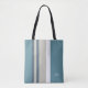 Tote Bag Moderne Turquoise bleu et tan rayé Personnalisé
