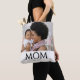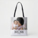 Black White Mom Established Classic Black Caps Photo Design. Replace the photo with your own and change the year to the year you first became a mom. Classic black serif font can be personalized by changing MOM to MUM, MAMA or even MIMI. This Mom tote would make a great gift for Mother's Day—especially for a new mom—or birthday, or "just because". This is a timeless, stylish design that speaks volumes. Please message me for extra branding for souvenir gifts for your mom group or church fellowship. Also in black.