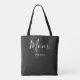Black and white "Mom Established" New Mom Gift. Minimal elegant script "Mom" tote bag. Add your custom established year when your first child was born or will be born. Perfect gift for the new mom in your life.