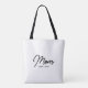 Black White Script Mom Established New Mom Gift - Minimal Elegant Script Mom Tote Bag. You may change "Mom" and the year.
