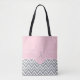 Tote Bag Monogram Grey Chevron avec point Polka rose pastel
