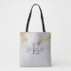 Apportez vos cadeaux fabuleux pour les anniversaires, les mariages, les demoiselles d'honneur, les fournitures de rentrée scolaire, les cadeaux du personnel, les cadeaux de l'entreprise, ou d'autres occasions spéciales dans ce sac fourre-tout avec un design audacieux qui est facile à personnaliser avec les initiales d'une personne, les initiales de l'école ou les initiales de l'entreprise. Sac fourre-tout en monogramme en marbre doré et gris.