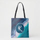 Tote Bag Monogramme Abstrait Bleu Océan
