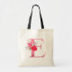 Tote Bag Monogramme Aquarelle Fleurs Rose Alphabet Or E