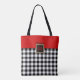 Notre modèle classique de sac fourre-tout monogramme en plastique de buffle comprend votre monogramme motif en carton rouge et noir en lettres de blocs modernes et votre nom en typographie en écriture manuscrite brosse. Le monogramme est bordé d'un carré motif de burlap, et la partie inférieure de la fourre-tout est assortie de buffle noir et blanc plaid. On parle souvent de motif de en vichy ou de bûcheron. #Monogram #BuffaloPlaid #Totes