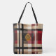Tote Bag Monogramme Classique Style Plaid Beige Rouge & Noi