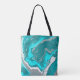 Tote Bag Monogramme d'art fluvial en marbre bleu, Turquoise