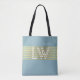 Design classique de bandes dorées sur bleu doux (couleur personnalisée) avec nom et initiales, pour femmes...