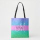 La parties scintillant de sirène bleu, vert, aqua et turquoise scintille le nom monogramme du dégradé et le sac fourre-tout initial. Votre nom personnalisé et votre monogramme sont écrits dans un élégant script écrit à la main avec un arrière - plan rose. Un cadeau d'anniversaire ou de Noël parfait !