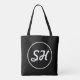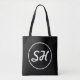 Tote Bag Monogramme de style rétro-moderne cool | Noir et b