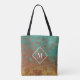 Tote Bag Monogramme de texture métallique turquoise en cuiv
