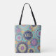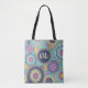 Un sac fourre-tout moderne et élégant, mignon, avec une typographie stylée, et une initiale tendance, monogrammed, facilement créer votre propre, avec joli bleu marine, violet orange turquoise, un élégant élégant élégant classe chic, avec l'illustration circulaire, un grand fourre-tout réutilisable