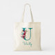 Tote Bag Monogramme en écriture U florale sarcelle rose