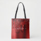 Ajoutez une touche de parties scintillant et de glamour à votre tenue avec ce sac fourre-tout personnalisé élégant. Ce modèle design chic dispose d'un monogramme de script bordeaux moderne et de votre nom en blanc pour personnaliser sur un arrière - plan de texture métallique brossée rouge accentué par une bordure de parties scintillant fausse goutte. Un cadeau féminin unique pour 16 ans, fêtes et toute occasion spéciale. Conçu pour vous par des Tee - shirts extrêmes !