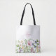 Sac fourre-tout monogramme fleur sauvage rose. Facile à modifier le texte. Jolie aquarelle fleurie pour le printemps et l'été.