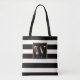 Tote Bag Monogramme floral or W | Rayures noires et or