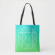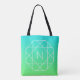 Tote Bag Monogramme géométrique cool | Ombre Vert bleu et c