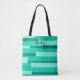 Motif géométrique abstrait vert sac fourre-tout quotidien avec votre nom. Motif et nom sont des deux côtés du sac. Monogram peut être personnalisé en style de police et couleur pour répondre à vos détails personnels.