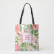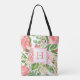Tote Bag Monogramme joli rose floral aquarelle pêche