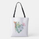 Tote Bag Monogramme Jolie aquarelle Fleurs Nom personnalisé