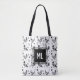 Tote Bag Monogramme mignon poulets de dessin en noir et bla