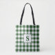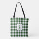 Tote Bag Monogramme moderne vert et blanc En vichy Motif
