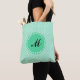 Sac fourre-tout tout-en-impression Monogrammé à la menthe magique et à pois blanc motif. Petit pois blanc sur menthe magique.